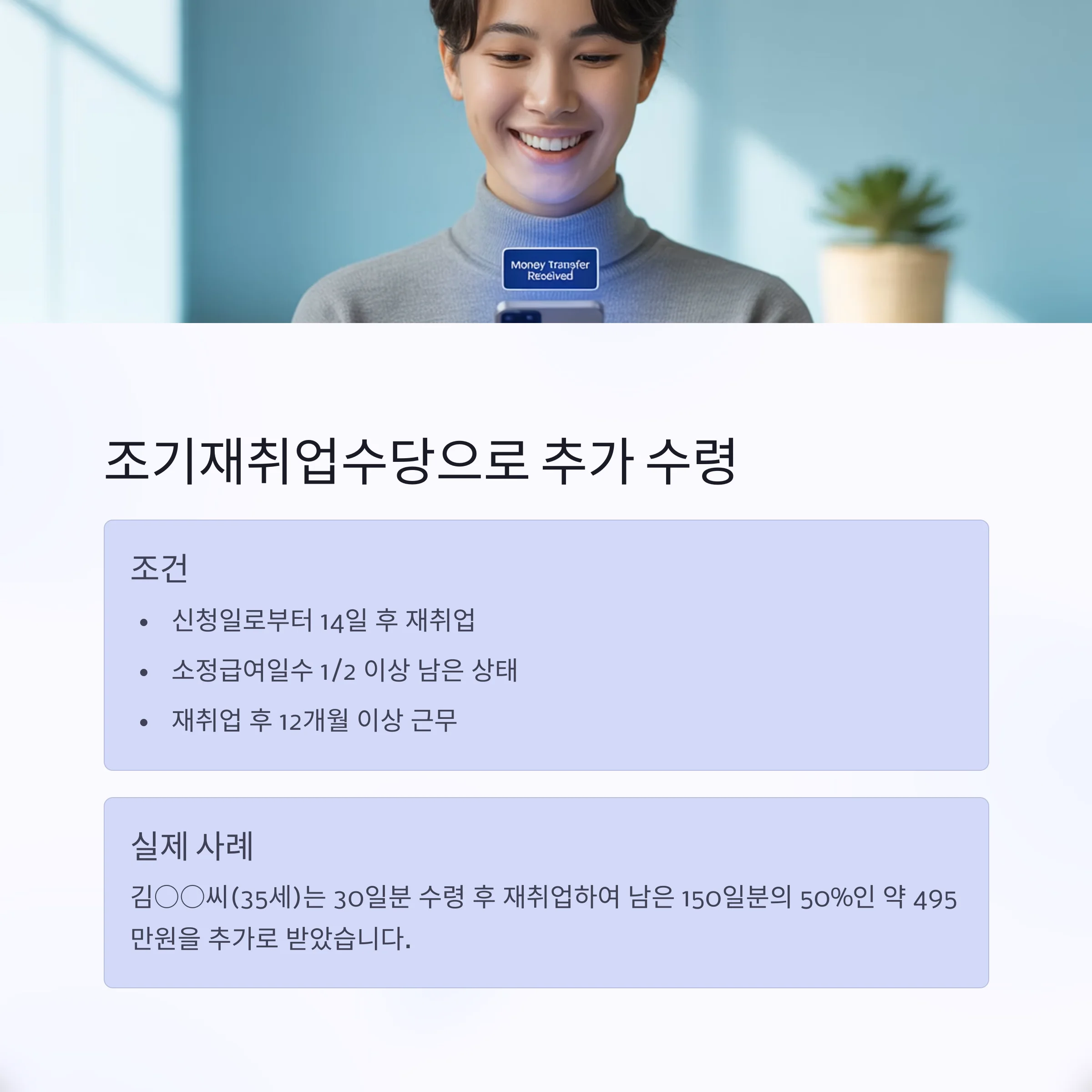 실제 사례: 조기재취업수당으로 450만원 추가 수령