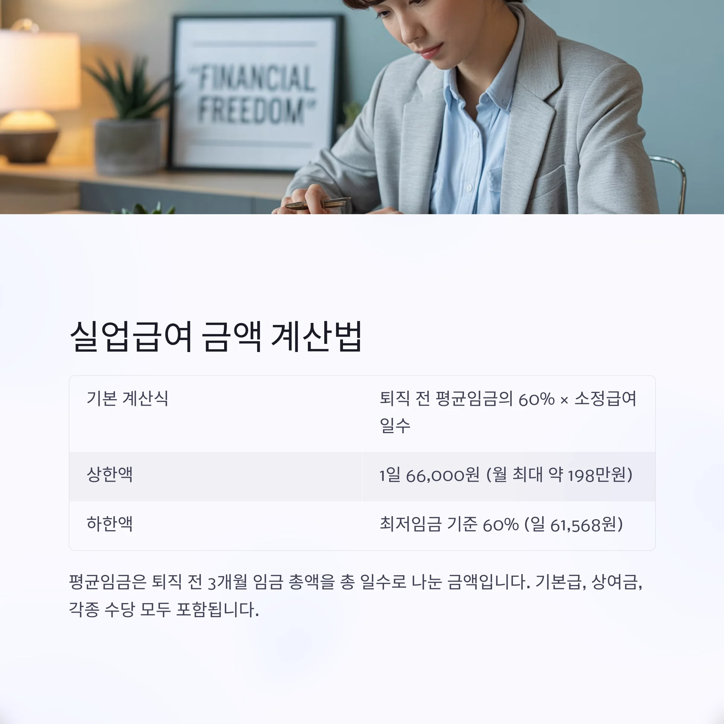 | 기본 계산식 | 퇴직 전 평균임금의 60% × 소정급여일수 |