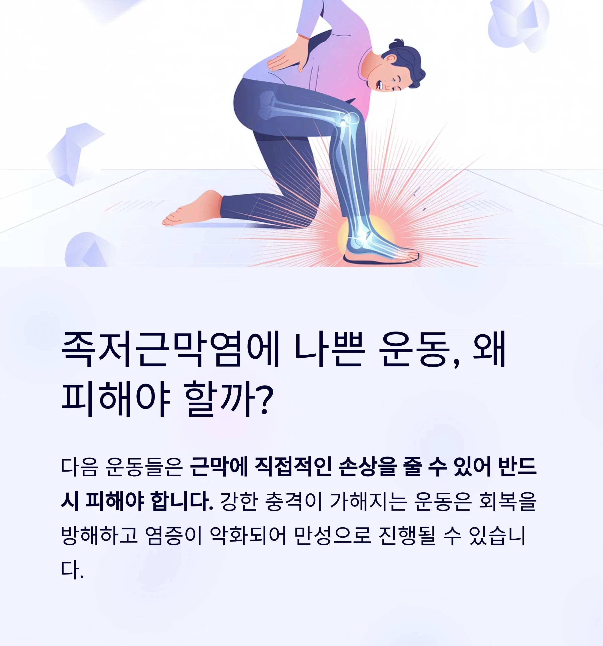 | 달리기 | 발뒤꿈치에 지속적 충격 → 염증 심화 |