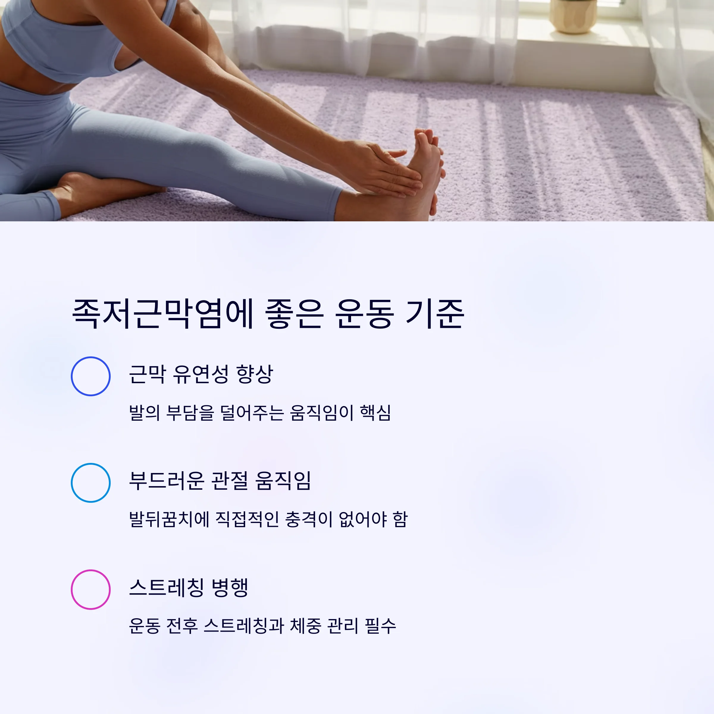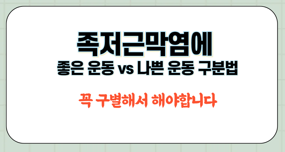 이 글에서는 족저근막염에 도움이 되는 운동과 피해야 할 운동을 정확히 구분해 알려드리겠습니다.