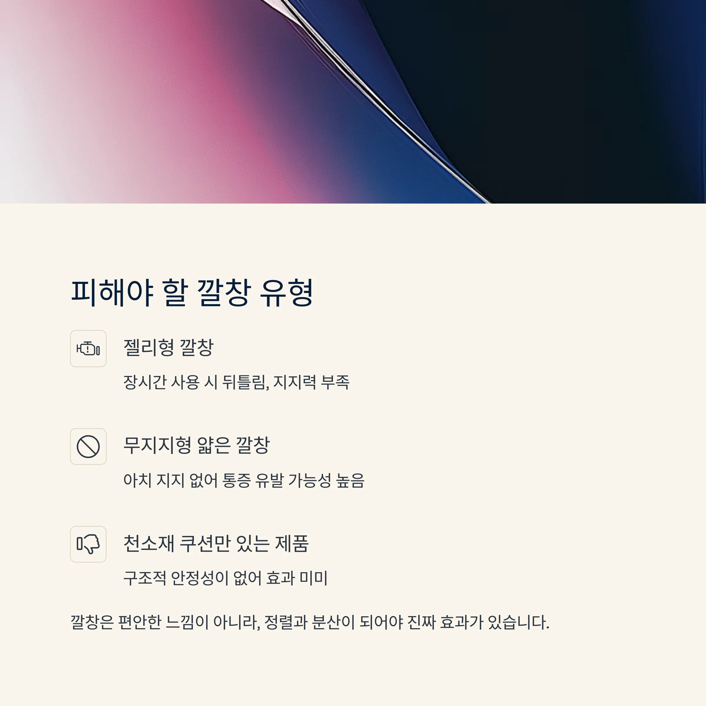 외형이나 가격이 아닌 기능 중심의 선택이 통증 개선의 첫 걸음입니다.