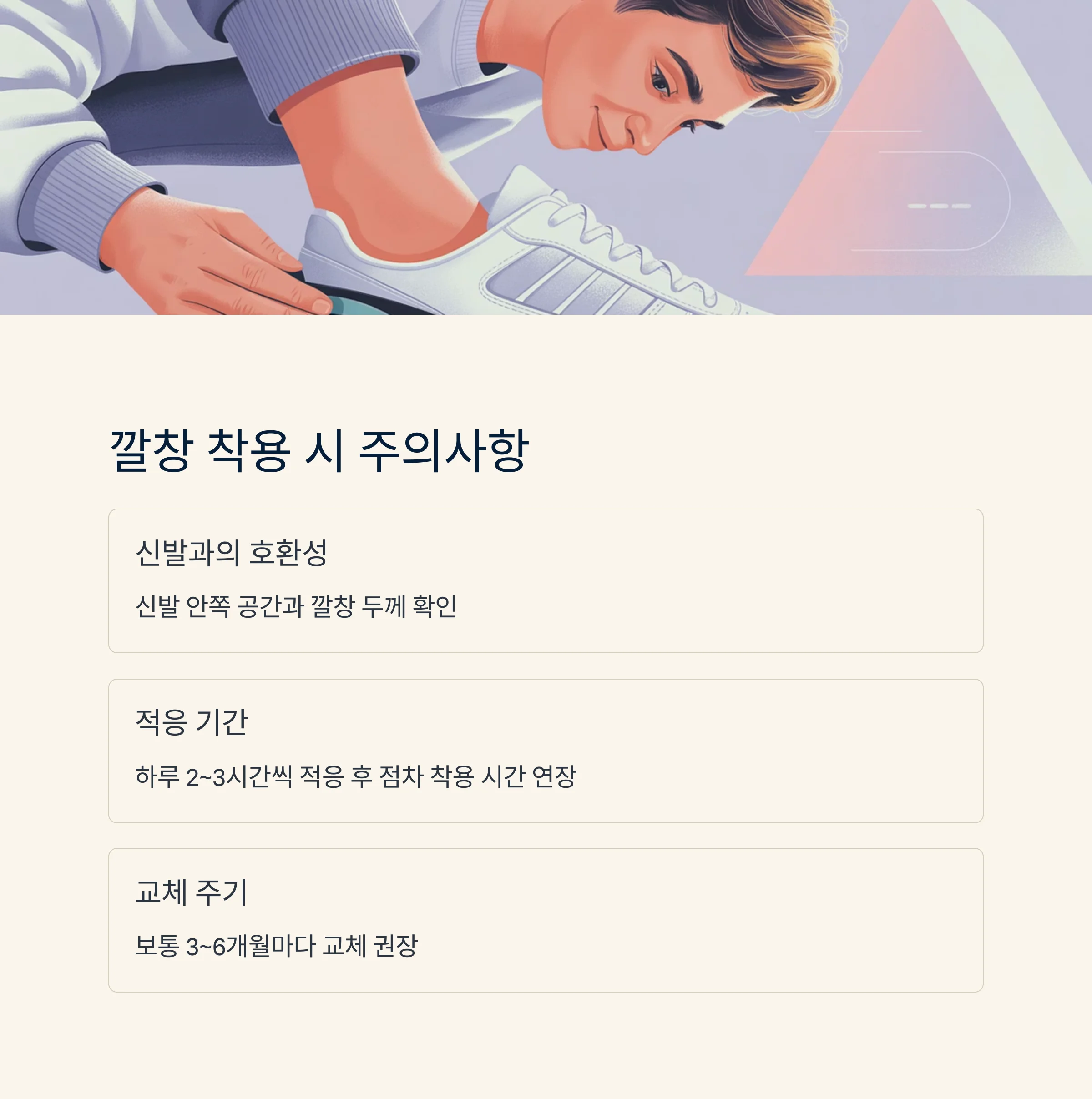 - 깔창 세척과 교체 주기(보통 3~6개월마다 교체 권장)