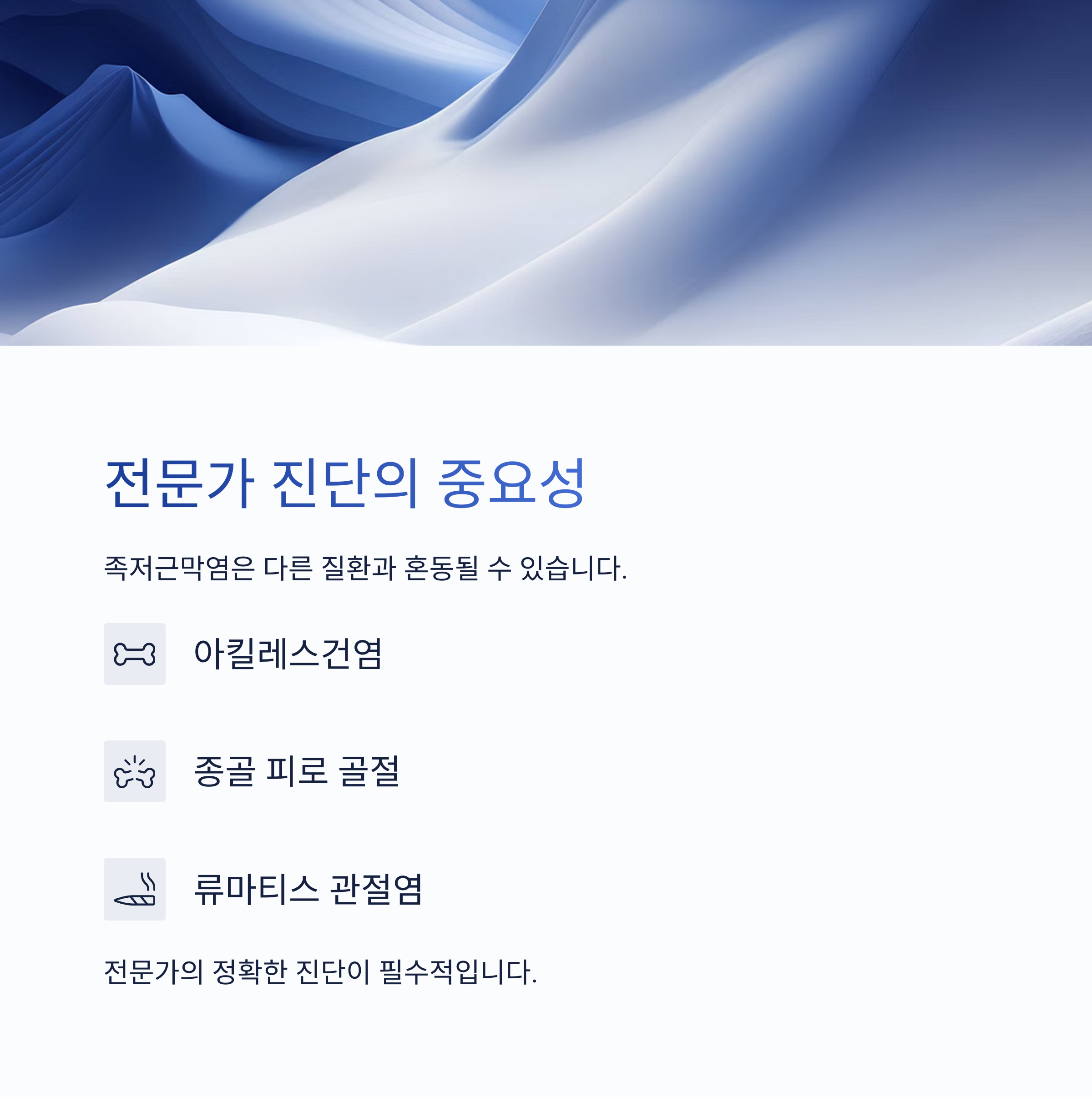 예를 들어 아킬레스건염, 종골 피로 골절, 류마티스 관절염 등과 유사한 통증 양상을 보이기 때문에