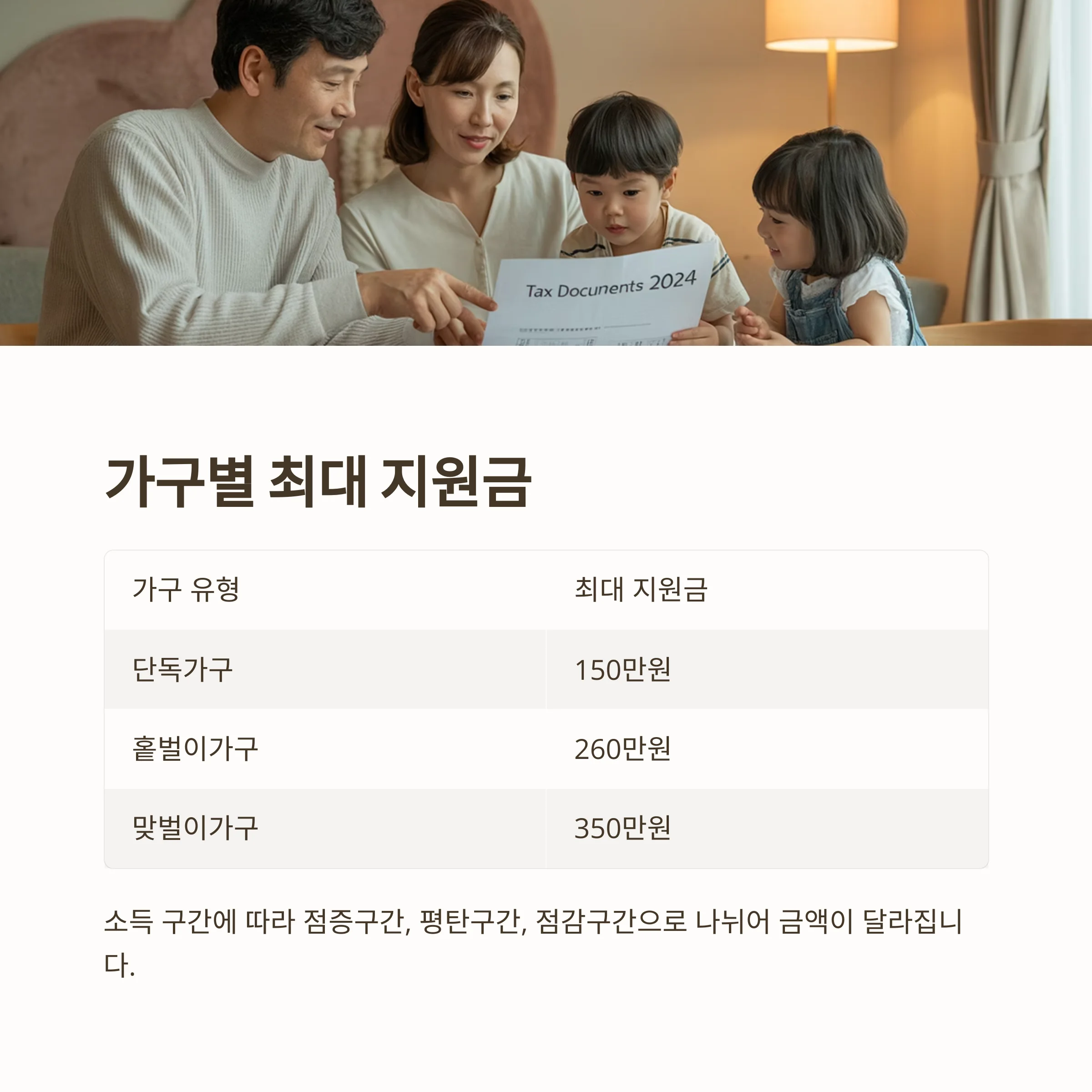 | 가구 유형 | 연간 소득 | 최대 지원금 |