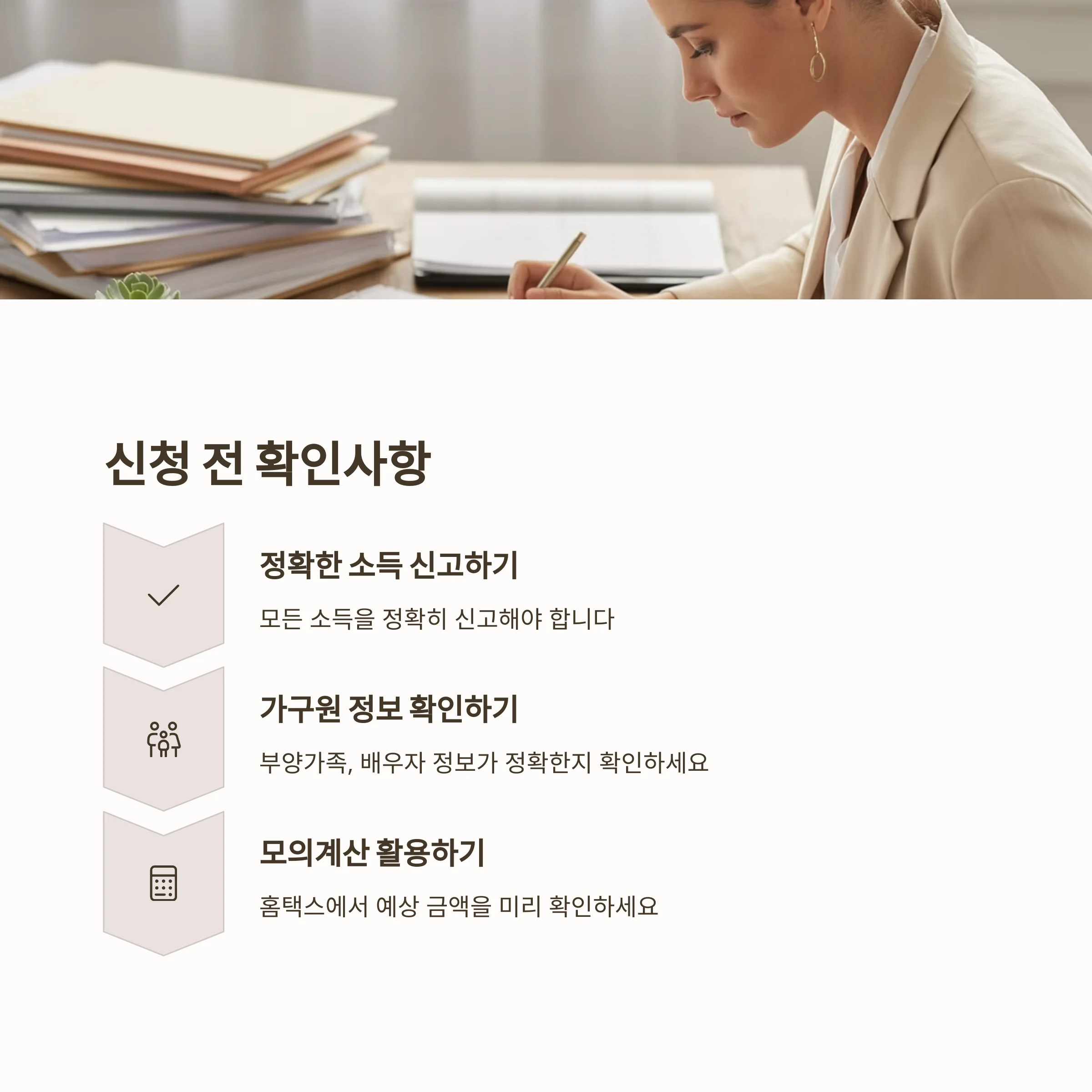 - 정확한 소득 신고하기 - 근로소득, 사업소득 등 모든 소득을 정확히 신고해야 합니다.